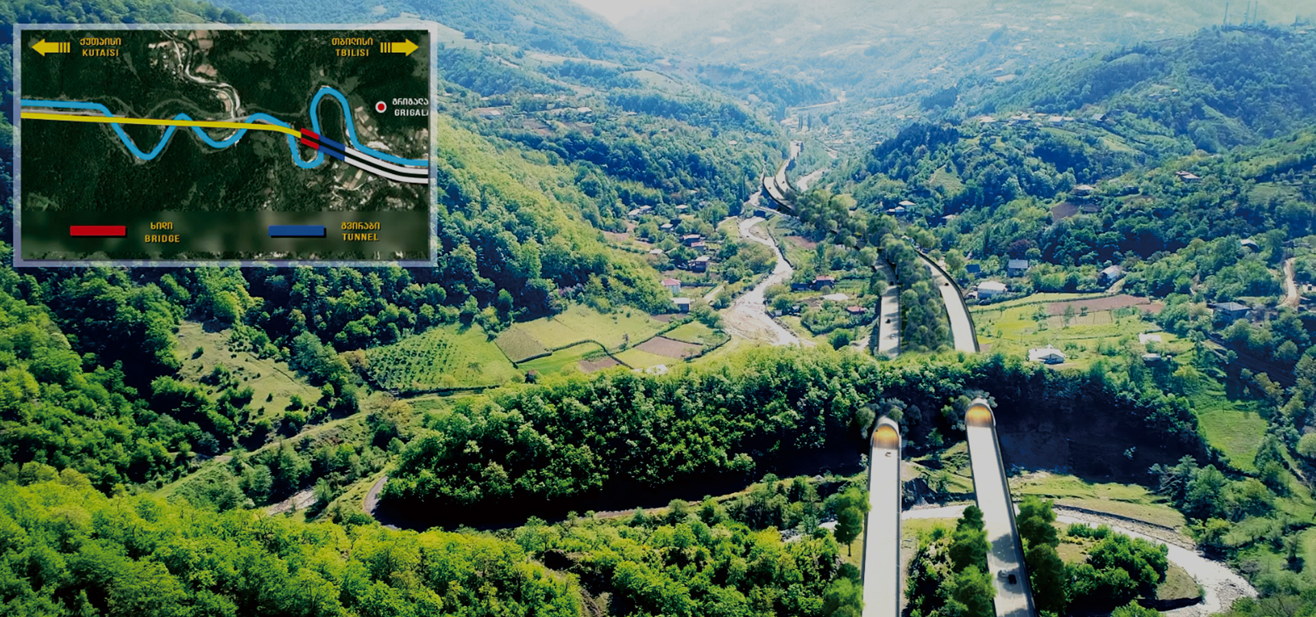 该项目介于大、小高加索山脉之间,共有35座桥梁,20座隧道,桥隧比高达72.8%。项目极大地缓解E60现有路段的交通压力,大大缩短首都第比利斯和巴统、波季的客货运时间,对促进格鲁吉亚及亚欧区域经济和社会发展具有重要意义。