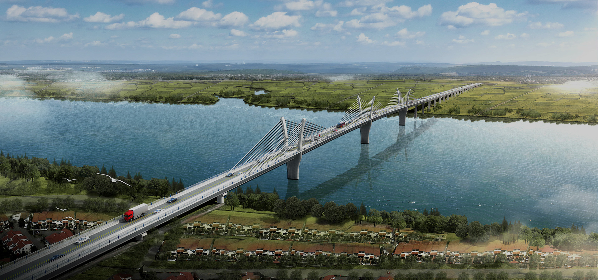 该项目是菲律宾第一座大型斜拉桥,全长2.17km,跨越菲律宾卡加延河,主桥采用82.5m+2x157.5m+82.5m三塔四跨双索面预应力混凝土矮塔斜拉桥,主桥桥宽13.42m,双向两车道。